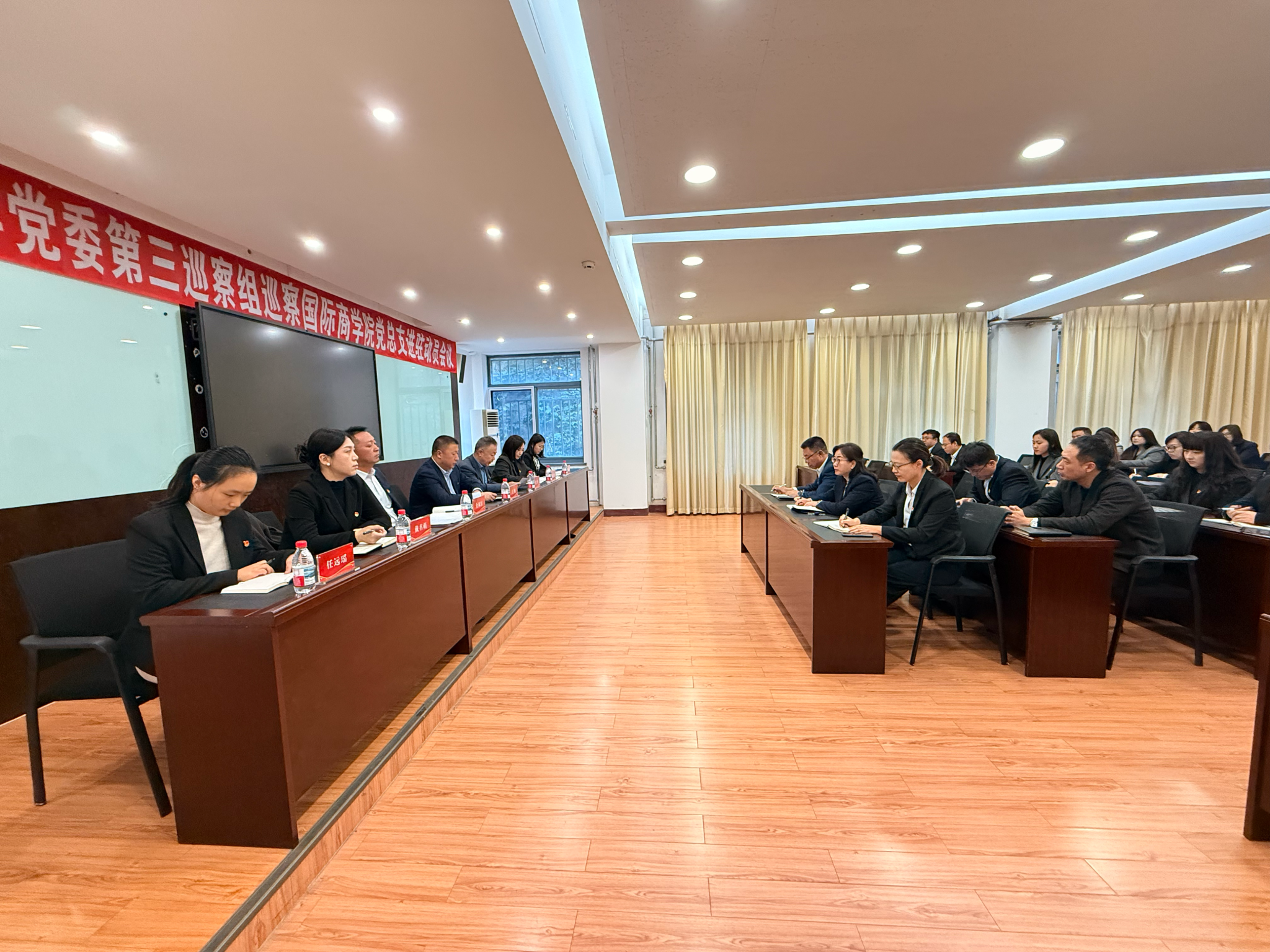 根据学校党委关于巡察工作的统一部署,2025年10月24日,校党委第三巡察组巡察国际商学院工作动员会召开。会前,校党委第三巡察组组长张军主持召开与国际商学院党总支书记全双厚的见面沟通会,通报了有关工作安排。