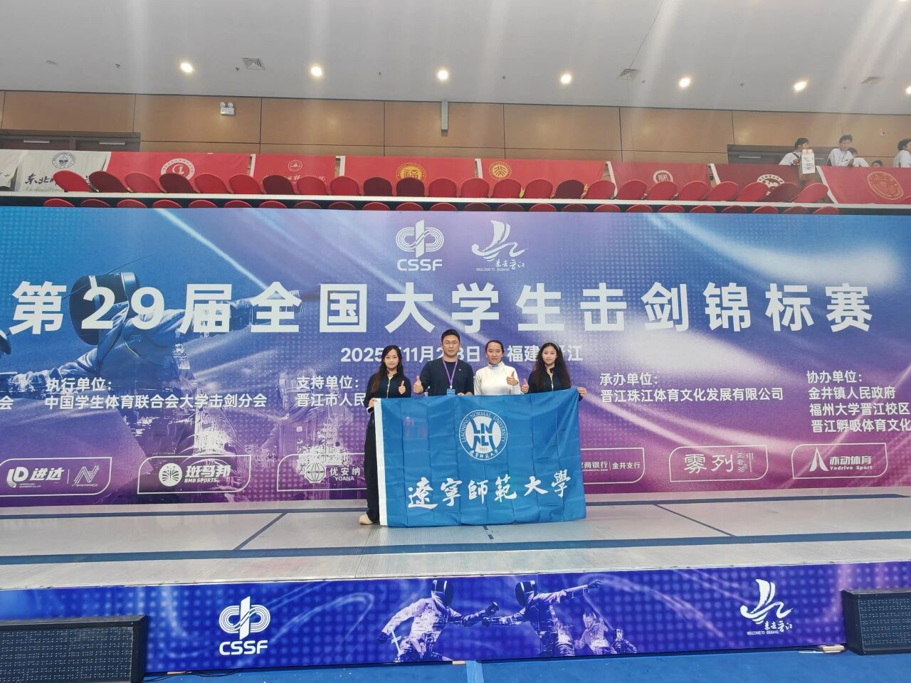 11月1日,第29届全国大学生击剑锦标赛在福建泉州开赛,本次赛事规模创历届新高。作为辽宁省高校唯一代表队,我校首次组队参赛,国际商学院陈芃、陈芄两名同学征战女子甲组佩剑项目。陈芃获得女子甲组佩剑个人赛第6名,陈芄获得第19名,二人携手斩获女子甲组佩剑团体赛第6名。